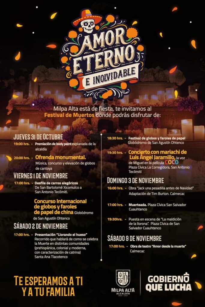 ¡Celebremos juntos una de las tradiciones más hermosas y milenarias! Considerada Patrimonio Inmaterial de la Humanidad, te invitamos a descubrir y compartir las actividades que la Alcaldía Milpa Alta ha preparado. Una zona llena de riqueza gastronómica, altares, música, teatro y comunidad. ¡Ven y vive esta experiencia única!