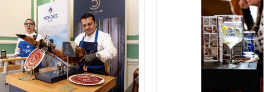 Osborne, con su larga tradición y calidad, ofrece una selecta gama de vinos y bebidas que complementan a la perfección la experiencia gastronómica española. El exquisito jamón ibérico Cinco Jotas, con su inconfundible sabor y textura, es un manjar que deleita a los paladares más exigentes. En el mundo de los destilados, la ginebra Nordés se abre paso en la coctelería con su frescura y aroma gallego, mientras que el Brandy Carlos I se presenta como una redefinición de este clásico.