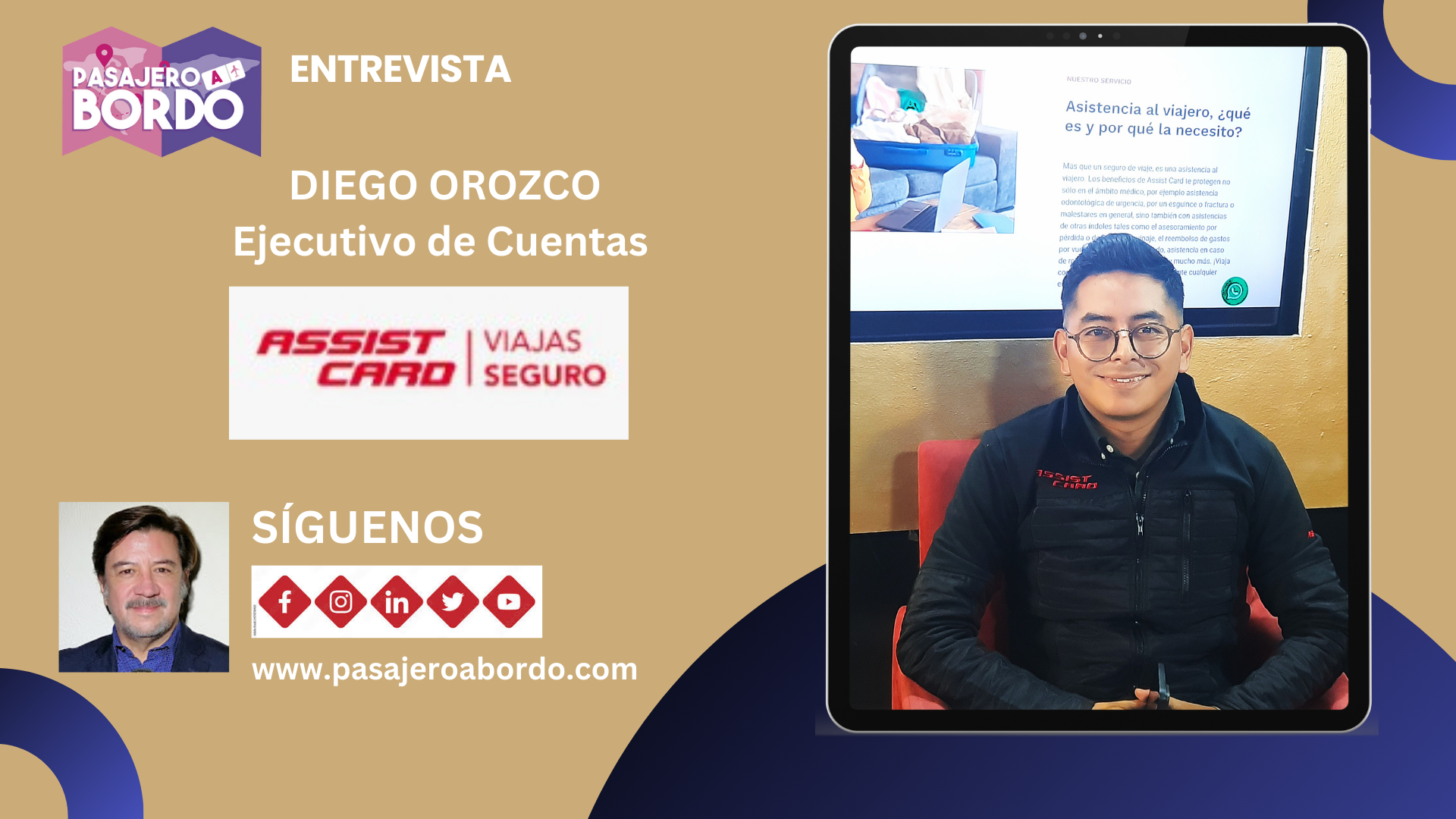 Nuestro Pasajero a Bordo de hoy es Diego Orozco, ejecutivo de cuentas de Assist Card. Descubre cómo viajar con tranquilidad con una asistencia al viajero que te protege en cualquier parte del mundo, sin importar tu edad. ¡No te lo pierdas!