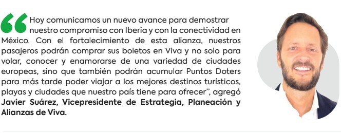 En el marco de su participación en la Feria Internacional de Turismo (FITUR) en Madrid, directivos de Viva, la aerolínea de la flex-SÍ-bilidad, e Iberia, la aerolínea insignia de España, se reunieron para refrendar la alianza que comenzó hace tres años y medio. Directivos de ambas aerolíneas firmaron un acuerdo para